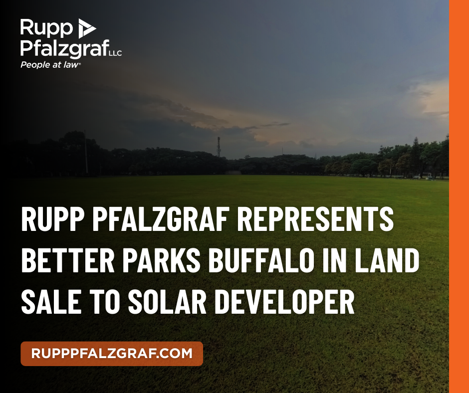 Rupp Pfalzgraf partners Benjamin Burge and Horace Gioia represented Better Parks Buffalo, Inc. in the sale of its South Buffalo land to Source Renewables, LLC, a Connecticut-based community solar developer.